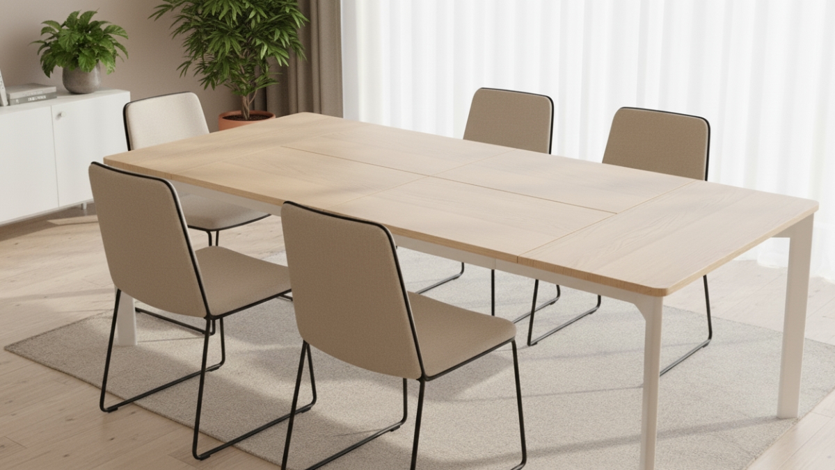 Grazie alle sezioni laterali dedicate, il tavolo può raggiungere due lunghezze: